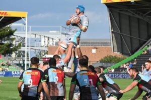 The blue-and-whites’ summer signing from Jersey Hutler then made a sharp break down the right and when the visitors won a penalty on the ground they kicked to the corner only to lose the ensuing lineout.