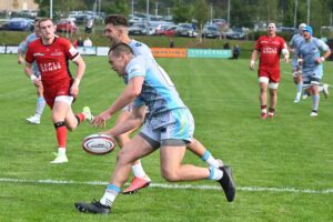 Alex Rae’s team looked certain to stretch their lead five minutes before the break when a scrum led to a cross-field break which left Chudley and Will Wand with the try-line gaping only for play to be halted for a forward pass.